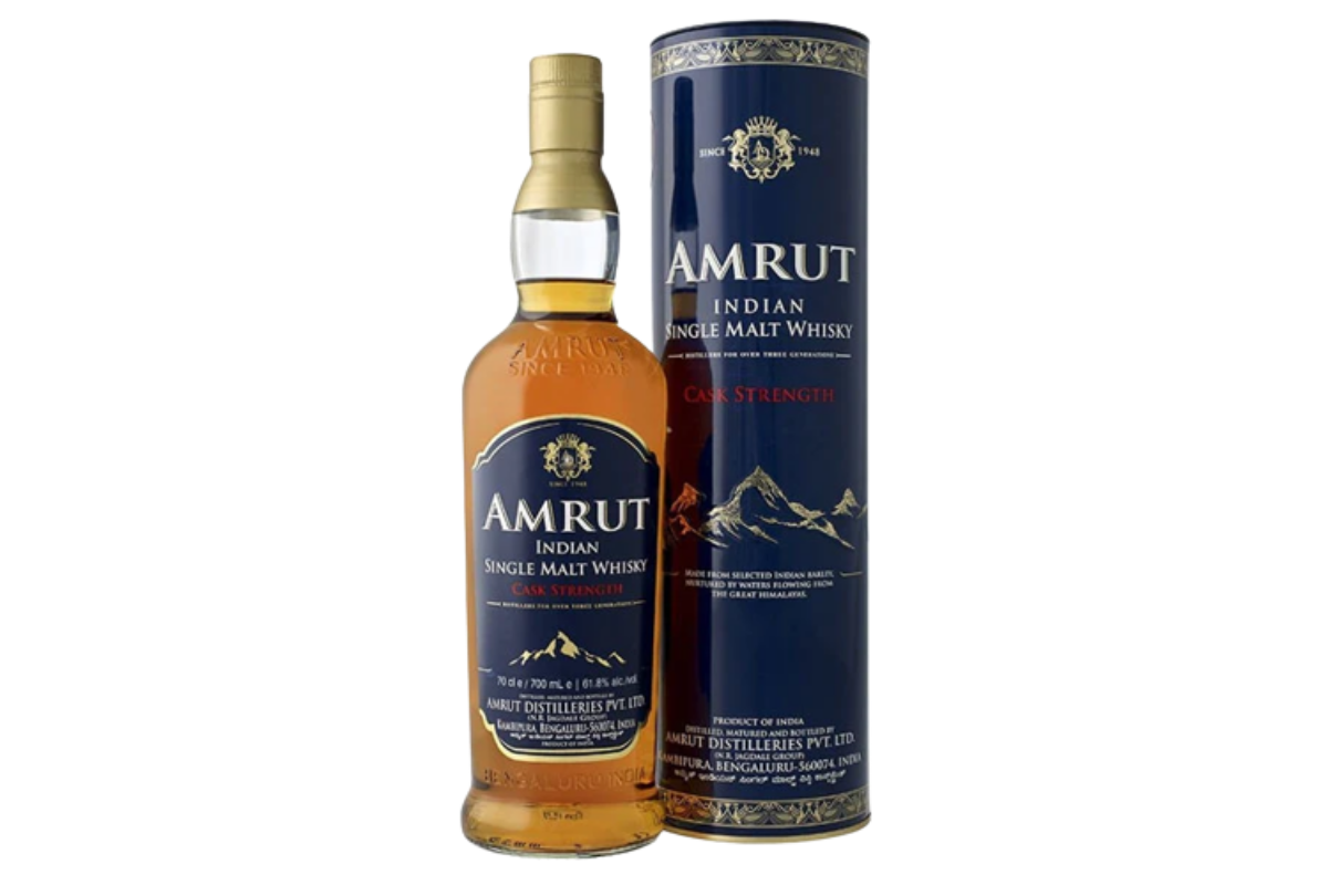 Amrut Cask Strength: This expression comes in a 700ml bottle with a robust 61.8% alcohol content. Known for its intense and full-bodied profile, Amrut Cask Strength showcases the Indian distillery's commitment to bold and flavorful single malt whiskies.